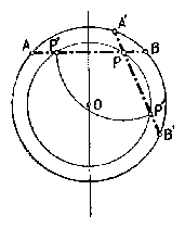 Jelölés mint az 1. megoldásban. A PP* felezőpontja $F$ egyszersmind az AB felezőpontja, tehát $OF\bot FP$ és így az $F$ pont rajta van az OP fölé, mint átmérő fölé rajzolt Thales-körön, továbbá $PF=PF'=\frac{d}{2}$.