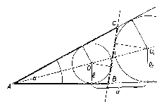 Eszerint a szerkesztés mente: a $BC=a$ háromszög oldal szerkesztése ugyanúgy történik, mint az 1 megoldásban. Felvesszük az $\alpha $ szöget és szerkesztünk egy $\rho $ sugarú, mindkét szárt érintő kört (1. ábra). Az egyik szögszáron az érintési pontól kiindulva felmérjük -- a szög csúcspontjától távololdó irányban -- az $a$ távolságot. Az így nyert pont lesz az említett tétel alapján a hozzáírt kör érintési pontja. A beírt és hozzáírt kör egy közös belső érintője metszi ki az $\alpha $ szög száraiból a $B$ és $C$ csúcspontokat. A megoldhatóság feltétele: a hozzáírt kör középpontját $O_1 $-gyel és sugarát $\rho _1 $-gyel jelölve, feladatunk csak akkor oldható meg, ha $\rho +\rho _1 \le OO_1 $. De