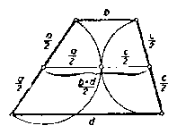 b) Ha a trapézba az oldalakat érintő kör írható, akkor tudjuk, hogy a szemközti oldalpárok összege megegyezik s így a középvonal, melynek hossza a párhuzamos oldalak számtani közepe, egyben a szárak felének összegével is egyenlő, s így a szárak mint átmérők fölé rajzolt körök közös pontban metszik a centrálisát. De ha két körnek a centrálisukon van közös pontja, akkor e pontban érintkeznek. Tehát a feltétel szükséges is. Ezzel igazoltuk a bizonyítandó állítást.