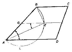 Tetszés szerinti ABCD trapéz $\left( {BC\left\| {AD} \right.} \right)$ AB szára fölé rajzoljunk félkört. Messe ez a középvonalat $E$-ben. Ekkor $E$-n mennek át az $A$ és $B$ csúcsból húzott szögfelezők. Valóban, a félkör középpontját $O$-val jelölve $AOE\Delta $ egyenlőszárú s így $OAE\angle =OEA\angle $, mivel pedig a középvonal párhuzamos a párhuzamos oldalakkal, így $OEA\angle =EAD\angle $, tehát AE felezi az $A$-nál lévő szöget. Hasonlóan látható, hogy BE is szögfelező.