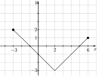 Ábrázolja a [–3; 6] intervallumon értelmezett $x \mapsto \left | x-2 \right |-3$ függvényt!