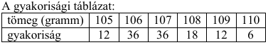 b) Készítsen gyakorisági táblázatot a 120 adatról, és számítsa ki ezek átlagát és szórását!