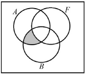 Az alábbi ábra egy érettségiző évfolyam diákjainak a halmazát szemlélteti. $ A $ jelöli az angol nyelvből, $ B $ a biológiából, $ F $ pedig a fizikából érettségiző diákok halmazát. Színezze be az ábrának azt a részét, amely azon diákok halmazát jelöli, akik angol nyelvből és biológiából érettségiznek, de fizikából nem!