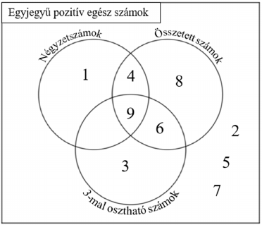 c) Írja be mind a kilenc egyjegyű pozitív egész számot az ábra megfelelő részébe!