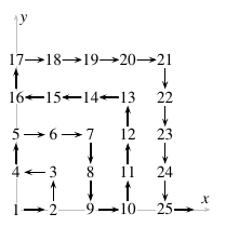 Az első síknegyedben a ( 0; 0 ) pontból kiindulva sorra vesszük az egész koordinátájú pontokat az ábra szerint. (Tehát például a (2; 1 ) pont a 8-as sorszámot kapja.)