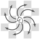 Kolumbusz legénységének egyik tagja jó sakkozó hírében állt. Mivel méltó ellenfelet nem talált a hajón, így inkább a következo feladványon gondolkodott: Egy huszárt elhelyezünk egy mind a négy irányban végtelen sakktábla egy mezojén. Jelölje $ f(n) $, hogy legfeljebb $ n $ lépéssel hány mezot érhet el (például $ f(1) = 9 $, ahogy az ábrán is látható). Léteznek olyan $ a $; $ b $; $ c $ egész számok, amelyekre teljesül, hogy ha $ n $ elég nagy, akkor $ f(n) = an^2 + bn + c $. Határozd meg az $ \left|a \right|\cdot \left|b \right| \cdot \left| c\right|$ szorzat értékét.