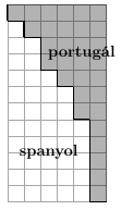 tordesillasi szerzodés felosztotta az Újvilágot Spanyolország és Portugália között. Két értékes sziget azonban éppen ráesik a nyugati 48-adik hosszúsági körre, így ezekrol külön kell rendelkeznie VI. Sándor pápának. Az elso kérdéses sziget téglalap alakú és 72 négyzet alakú parcellára tagolódik, az ábrán látható módon. A pápa úgy szeretné felosztani a szigetet a portugál és a spanyol uralkodó között, hogy ha egy parcella a portugáloknak jut, akkor minden attól keletre vagy északra levo parcella is a portugálok kezére kerüljön. Emellett azt is szeretné, hogy a portugál parcellák száma 3-mal osztva 1 maradékot adjon. Hány olyan felosztás van, amely mindegyik elvárást kielégíti? Az ábrán egy lehetséges felosztás látható, a portugálok részét szürkével jelöltük.