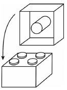 Egy építőkészletben a rajzon látható négyzetes hasáb alakú elem is megtalálható. Két ilyen építőelem illeszkedését az egyik elem tetején kiemelkedő négy egyforma kis henger és a másik elem alján lévő nagyobb henger szoros, érintkező kapcsolata biztosítja. (Ez azt jelenti, hogy a hengerek tengelyére merőleges síkmetszetben a nagyobb kört érinti a négy kisebb kör, amelyek középpontjai egy négyzetet határoznak meg.) Tudjuk, hogy a kis hengerek sugara 3 mm, az egymás melletti kis hengerek tengelyének távolsága pedig 12 mm.