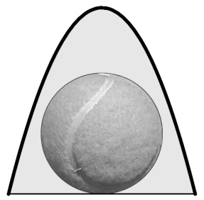 A koordináta-rendszerben készült tervrajzon a teniszlabda röppályáját jelképező $ y=4-x^2 $ egyenletű parabola, valamint az x tengely határolja a parabolaszeletet. Az emblémán látható még a teniszlabdát jelképező kör is, ennek egyenlete $ x^2+y^2-2,6y=0 $.