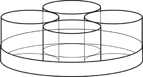 Egy cég az általa forgalmazott poharakat négyesével csomagolja úgy, hogy a poharakhoz még egy tálcát is ad ajándékba. A 20 cm (belső) átmérőjű, felül nyitott forgáshenger alakú tálcára négy egyforma (szintén forgáshenger alakú) poharat tesznek úgy, hogy azok szorosan illeszkednek egymáshoz és a tálca oldalfalához is.