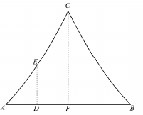 Az ábrán az egyesület székházának függőleges síkú homlokzata látható, amelyet az AC és BC egybevágó parabolaívek határolnak. A parabolák tengelye egy-egy függőleges egyenes, ezek az AB szakasz felezőmerőlegesére szimmetrikusan helyezkednek el. A homlokzat szélessége $ AB = 8 $ méter, magassága $ FC = 6 $ méter, az AF szakasz D felezőpontjában mért tetőmagasság pedig $ DE = 2,5 $ méter.
