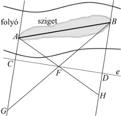 Thalész, a hét görög bölcs egyike, egy nevezetes, neki tulajdonított mérés során egy folyóban lévő sziget AB hoszszát a folyóparton maradva határozta meg.