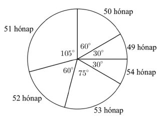 Egy napelemes akkumulátortöltőket gyártó cég termékei közül 24 darabnak az élettartamát vizsgálták. A vizsgálat végeredményét (a 24 darabra vonatkozóan) az alábbi kördiagram szemlélteti.