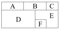Az $ A $, $ B $, $ C $, $ D $, $ E $, $ F $ tartományokat úgy kell kiszínezni, hogy azonos színű tartományok ne érintkezzenek egymással. A színezéshez a piros, kék, zöld és sárga színek használhatók. (Mindegyik tartományt ki kell színezni a megadott színek egyikével, de nem kötelező mind a négy színt felhasználni.)