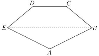 Mekkorák az ötszög (belső) szögei? b) Mekkora az ötszög területe? c)Hányféleképpen járható be az ábrán látható ABCDE ötpontú gráf, ha mindegyik élén pontosan egyszer kell végighaladnunk? (A bejárás kezdőpontja a gráf egyik csúcsa; egy csúcsba érkezve csak olyan élen haladhatunk tovább, amely szintén az adott csúcsból indul.))