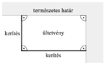 A téglalap két szomszédos oldala természetes határokkal védhető, ezért csak a másik két oldalon kell kerítést építeni. A környezeti adottságok miatt a kerítés építési költsége a két oldalon különböző: az egyik oldalon 5 ezer Ft/m, a másik oldalon pedig 10 ezer Ft/m. A kerítés építésére összesen 400 ezer Ft áll rendelkezésre. d) Hogyan kell megválasztani a két kerítésszakasz hosszát, hogy a rendelkezésre álló összegből a legnagyobb területű ültetvényt lehessen elkeríteni?