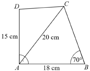 Az $ \{a_n\} $ sorozat tagjaira $ n \ge 2 $ esetén az $ a_n=a_{n-1}+n $ összefüggés teljesül. Egy négyszög belső szögei (fokban mérve) $ a_1 $, $ a_2 $, $ a_3 $ és $ a_4 $. a) Határozza meg a négyszög belső szögeinek nagyságát! Az $ ABCD $ négyszög oldalai, átlói és szögei közül ismertek a következők: $ AB = 18 $cm, $ AD=15 $cm, $ AC=20 $cm, $ DAB\sphericalangle= 90^\circ $, $ ABC\sphericalangle= 70\sphericalangle $.