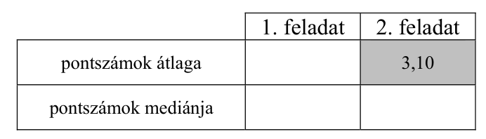a) A diagramok alapján töltse ki a táblázat üres mezőit! Az első feladatra kapott pontszámok átlagát két tizedes jegyre kerekítve adja meg!