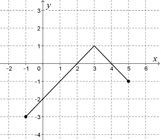 Az ábrán a [–1; 5] intervallumon értelmezett függvény grafikonja látható. Válassza ki a felsoroltakból a függvény hozzárendelési szabályát!