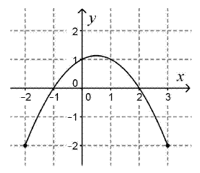 Az ábrán látható függvény értelmezési tartománya a [–2; 3] intervallum, két zérushelye –1 és 2. Az értelmezési tartományának mely részhalmazán vesz fel a függvény pozitív értéket?