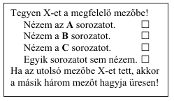 Az ábrán látható kérdőíven a válaszoló vagy azt jelölhette be, hogy az A, B és C sorozatok közül melyiket nézi (akár többet is meg lehetett jelölni), vagy azt, hogy egyiket sem nézi.