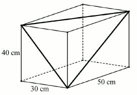 Egy téglatest alakú akvárium egy csúcsból kiinduló élei 30 cm, 40 cm, illetve 50 cm hosszúak.