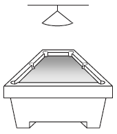 Egy biliárdasztal játékterülete téglalap alakú, mérete 194 cm × 97 cm. A játékterület középpontja felett 85 cm-rel egy olyan (pontszerűnek tekinthető) lámpa van, amely fénykúpjának a nyílásszöge 100°.