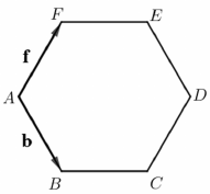 Az $ ABCDEF $ szabályos hatszögben $ \vec{b} = \overrightarrow{AB} $ és $ \vec{f} = \overrightarrow{AF }$ . Fejezze ki a $ \vec{b} $ és $ \vec{f} $ vektorok segítségével az $ \overrightarrow{AD} $ vektort!