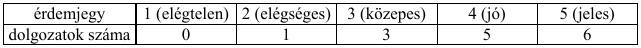 Az alábbi táblázat egy biológiadolgozat eredményeit mutatja. Adja meg az adathalmaz móduszát és mediánját!