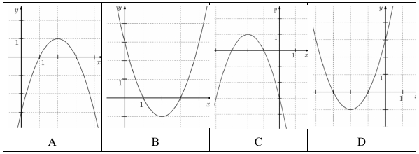 c) Az alábbi grafikonok közül válassza ki az $ f $ függvény grafikonját (karikázza be a megfelelő betűt), és határozza meg az $ f $ értékkészletét!