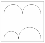 A felső görbét alkotó két egyforma félkör átmérőjének összege 48 cm. Az alsó görbét alkotó két félkör átmérőjének összege szintén 48 cm.