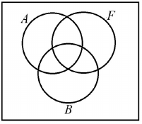 Az alábbi ábra egy érettségiző évfolyam diákjainak a halmazát szemlélteti. $ A $ jelöli az angol nyelvből, $ B $ a biológiából, $ F $ pedig a fizikából érettségiző diákok halmazát. Színezze be az ábrának azt a részét, amely azon diákok halmazát jelöli, akik angol nyelvből és biológiából érettségiznek, de fizikából nem!
