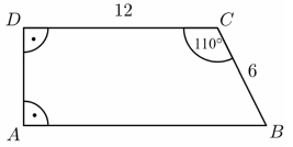 Az $ ABCD $ derékszögű trapéz $ 6 $ cm-es $ BC $ szára $ 110^ \circ $-os szöget zár be a $ 12 $ cm-es $ CD $ alappal. a) Számítsa ki a trapéz másik két oldalának a hosszát! b) Számítsa ki a $ BCD $ háromszög $ BD $ oldalának hosszát és ismeretlen szögeinek nagyságát!