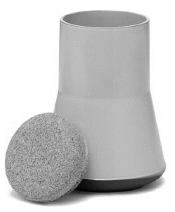 A képen egy kerámia tárolóedény és a parafából készült teteje látható.