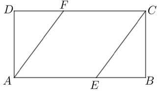 Az $ ABCD $ téglalap $ AB $ oldalának hossza 12 cm, a $ BC $ oldal hossza 6 cm. A téglalapba az $ AECF $ rombuszt írjuk az ábrán látható módon ($ E $ az $ AB $ oldal, $ F $ a $ CD $ oldal egy pontja).