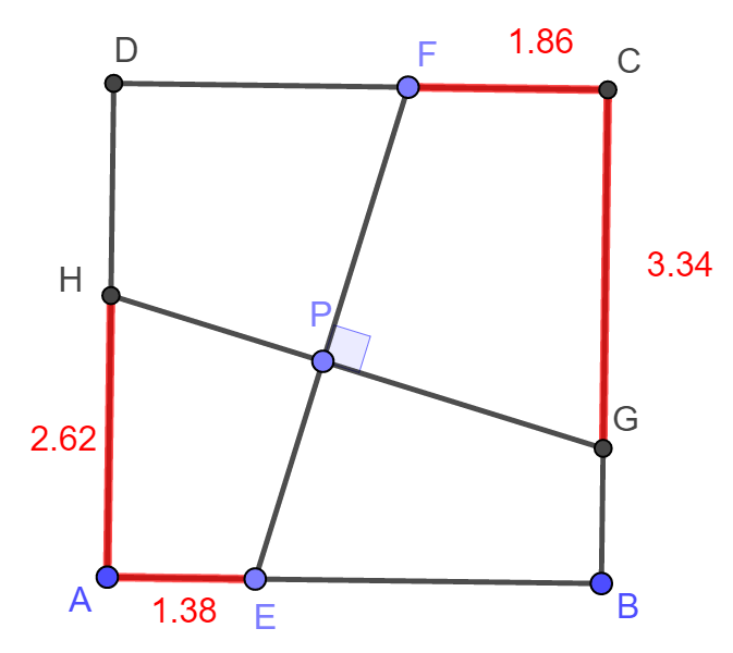 Az ABCD négyzet AB, CD, BC és DA oldalán rendre felvesszük az E, F, G és H pontokat úgy, hogy EF és GH merőlegesek legyenek egymásra. Hogyan kell megválasztani a pontokat ha azt akarjuk, hogy az