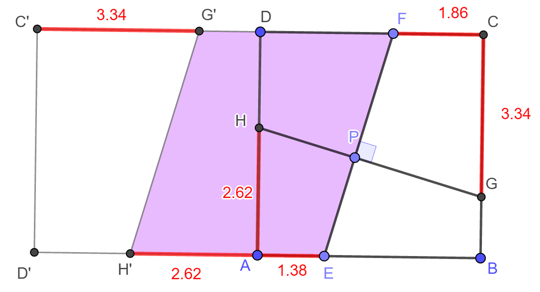 a feltétel alapján belátható, hogy H'E=G'F, így a négyszög