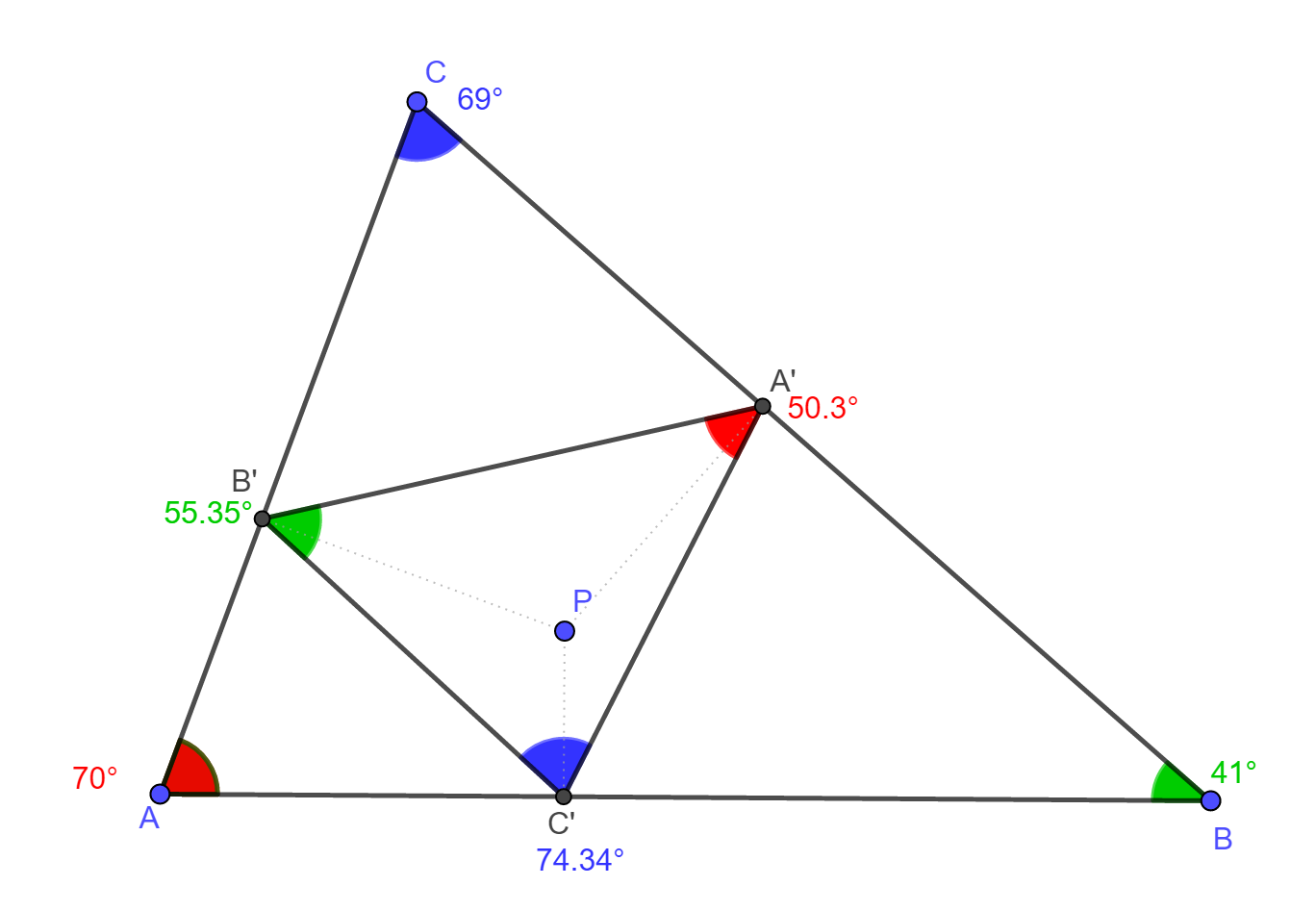 háromszög egy belső pontja P, a P pont BC,