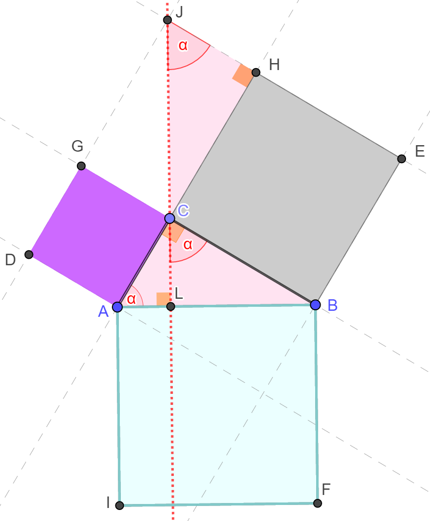 egybevágóság miatt CJ=AB és JH=AC=CG, amiből viszont
