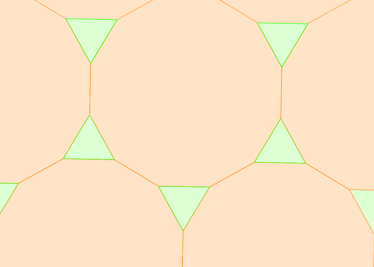 így a (6, 6, 6) síkkitöltést kapjuk, ami csak egyfajta sokszöget