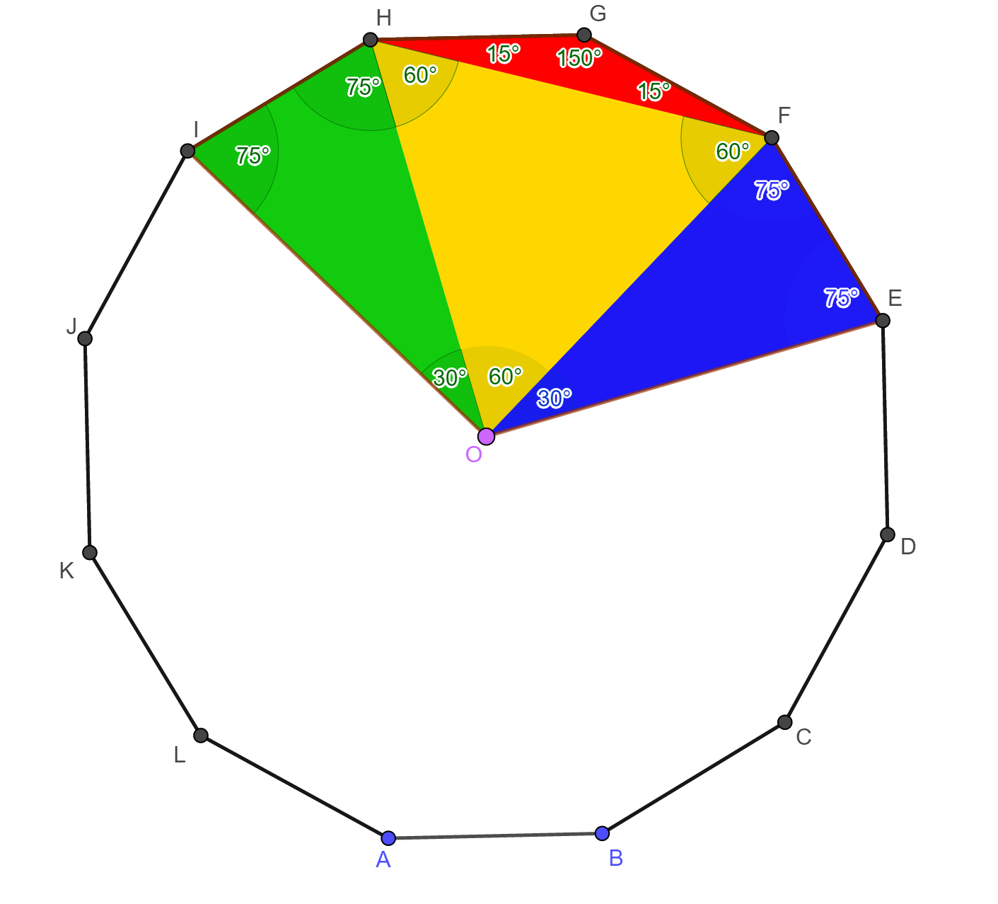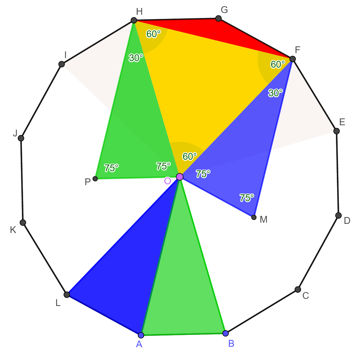 12-szög középpontját jelöljük O-val.