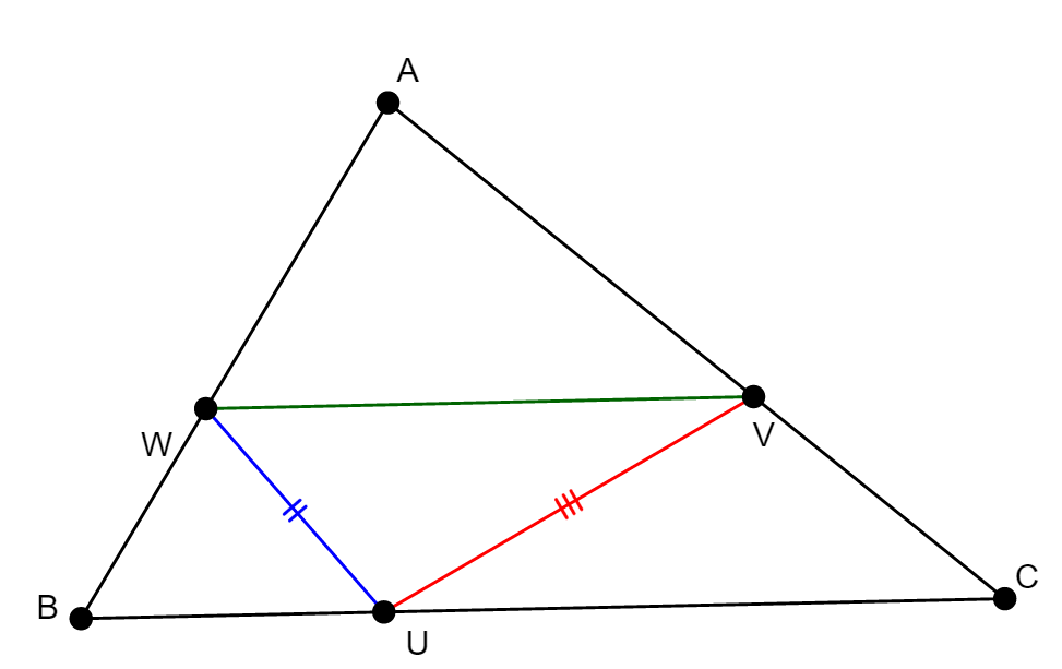 szerint. Vizsgáljuk meg az UVW háromszög kerületét az U, V, W ponrok helyzetének függvényében!
