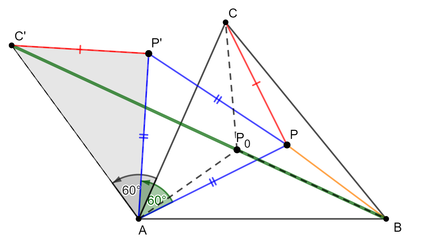 pont körül 60°-kal. Így az APC△ átkerül az AP’C’△