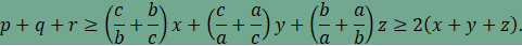 pont távolsága a csúcsoktól p, q,