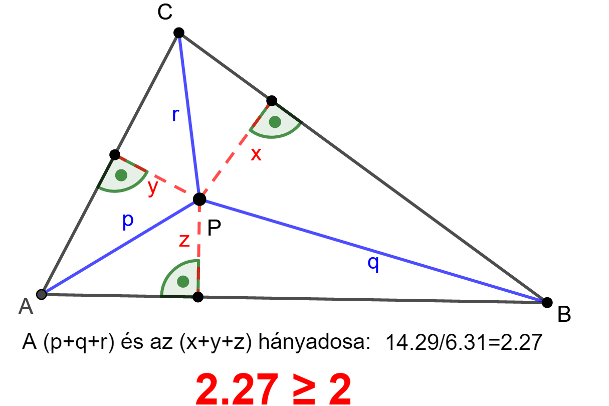 háromszög belsejében levő P