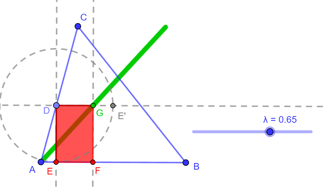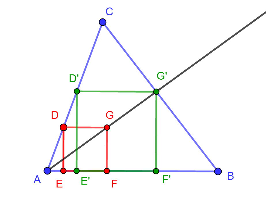 is. Elegendő ugyanis egyetlen olyan négyzetet szerkeszteni, amelynek D csúcsa az AC oldalra, EF oldala pedig az AB oldalra esik.