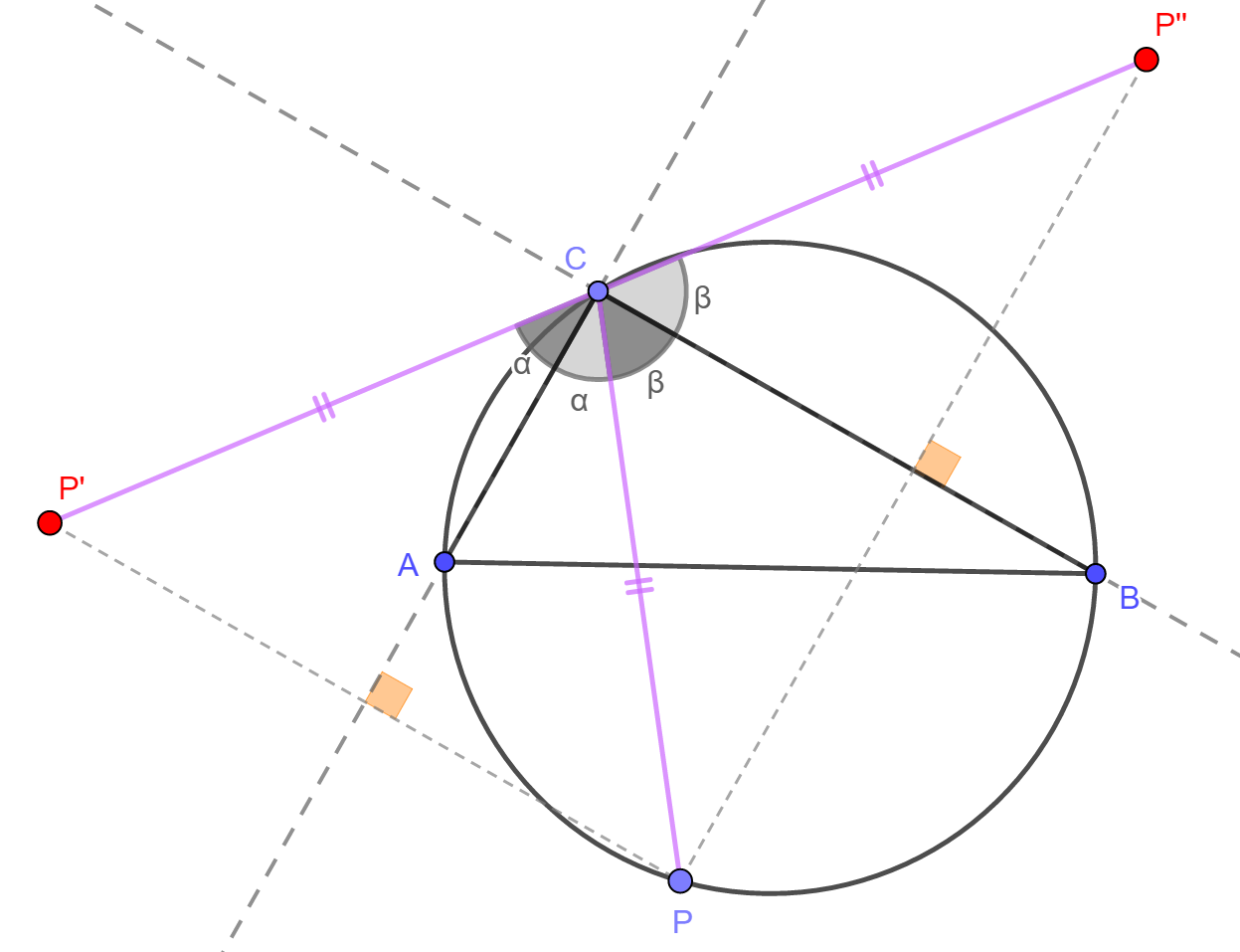 animáció alapján azonnal látható, hogy a P', C és P'' pontok egy
