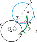 Mutassuk meg, hogy a pályagörbe P(t0) pontjában a pályagörbe érintőegyenese átmegy a k(t) kör azon S pontján, amely a körön átellenes a k(t) kör és a γ görbe érintési pontjával!