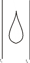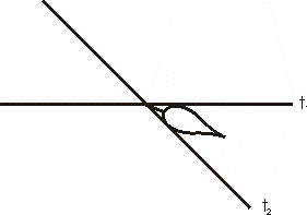 F1.: A csepp két oldalán látható egyenesek a tükrök helyét jelzik, az egyik tükörbe a csepp oldaláról nézünk majd bele. Jósold meg, mit fogunk látni?