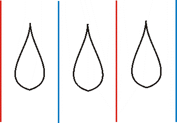 M.: nem könnyű, ne adjuk házi feladatnak, esetleg befejezni, de kezdjük el együtt az órán. Egy figurát rajzol a gyerek egy piros és egy kék tengellyel. Először tükrözi a piros tengelyre a figurát és a kék tengelyt – ennek képe is kék legyen, majd megfordítja a lapot, és most az egész ábrát a kék tengelyre tükrözi úgy, hogy a piros tengelyek képei mind pirosak, a kék tengelyek képei mind kékek. 6-7 cseppből álló sort készítsünk, akinek van kedve, az folytathatja hosszabban is. Házi feladatként hasonló sorminták tervezését adhatjuk, gyönyörű terem-dekorációk születnek majd.